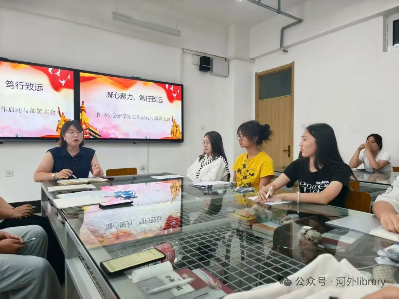 2025年9月9日17时20分,河北外国语学院图书协会在远东教学楼226教室召开了图书协会2025—2026学年第一次全体大会暨新学期工作启动与部署会议。图书协会全体成员参加会议,图书馆方舰馆长与流通部张涛老师出席会议。