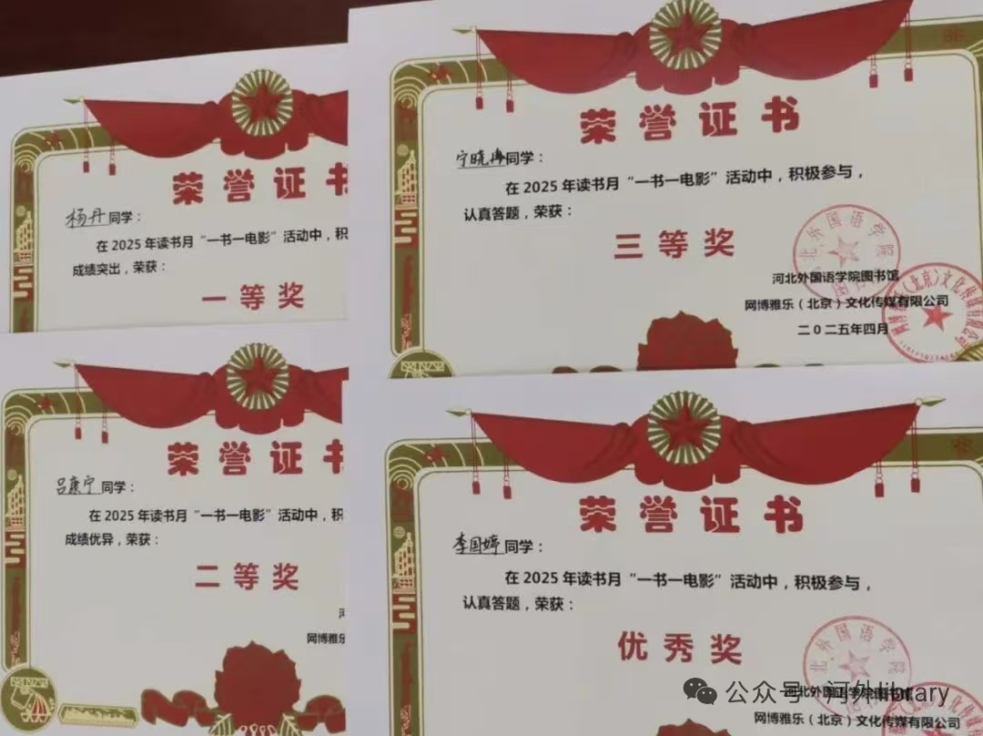 通过参与图书馆组织或推广的各类活动,同学们屡获殊荣,取得了各级各类奖项。图书馆也对获奖的团队和个人给与了充分的表彰,并颁发荣誉证书或者奖品以资鼓励。