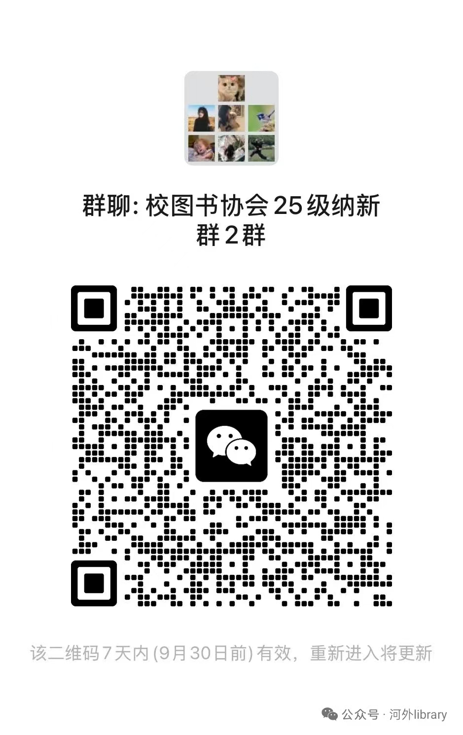 心动不如行动,想要加入我们的小伙伴可以扫码入群。有疑问、在纠结的小伙伴们也可以进群了解一下校图书协会再做决定哦!