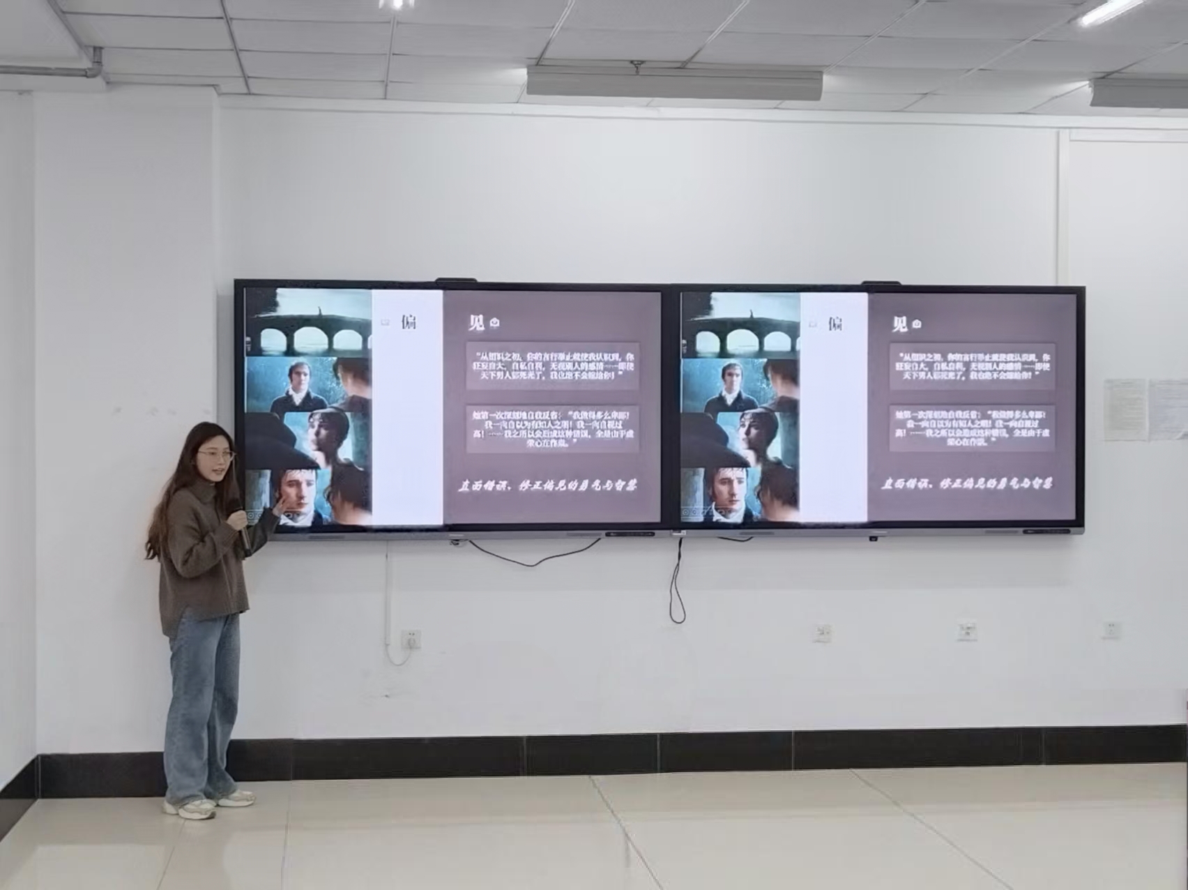 选手分享环节结束,计算机学院王纱纱老师作总结点评:“非常荣幸作为评委参与今天的读书分享会。刚才聆听了各位选手的精彩分享,我深受感动,也倍感欣慰。从大家的讲述中,我不仅看到了你们对书籍内容的深刻理解,更感受到了你们与文本之间真诚而独特的对话。有的同学展现了严谨的逻辑思辨,将书中哲思与现实关切巧妙结合;有的同学则凭借细腻的情感体悟,带领我们走进了人物的内心世界。