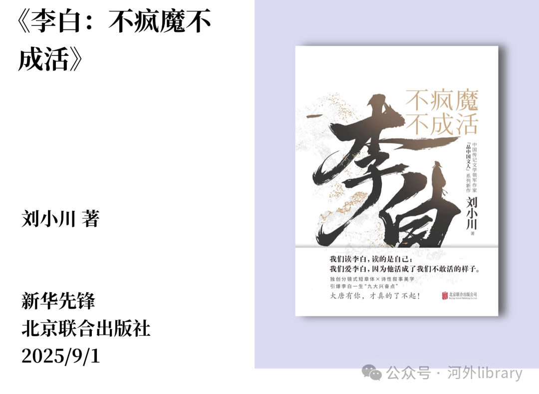 作家刘小川以其特有的“传记小说”笔法,穿透历史的层层光环,将一个有血有肉的李白带到我们面前。刘小川笔下的李白,既是仗剑天涯的侠客,又是醉卧云端的诗仙,更是汉语星空最闪耀的星辰。书中描写更多的是他作为“普通人”的挣扎与狂喜——他的仕途失意、他的嗜酒如命、他的仗剑远游,以及那深藏于“疯魔”表象之下,对自由与精神独立的极致追求。