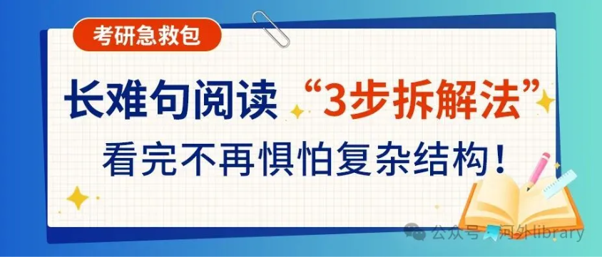 考研初试马上就要到来,不少同学看似每个单词都认识,却总被从句结构、插入语与修饰语绕晕,根本读不懂长难句。别慌!今天给你带来一套考研长难句“3步拆解法”助你理清结构、抓住主干,真正做到一眼拆解复杂句!
