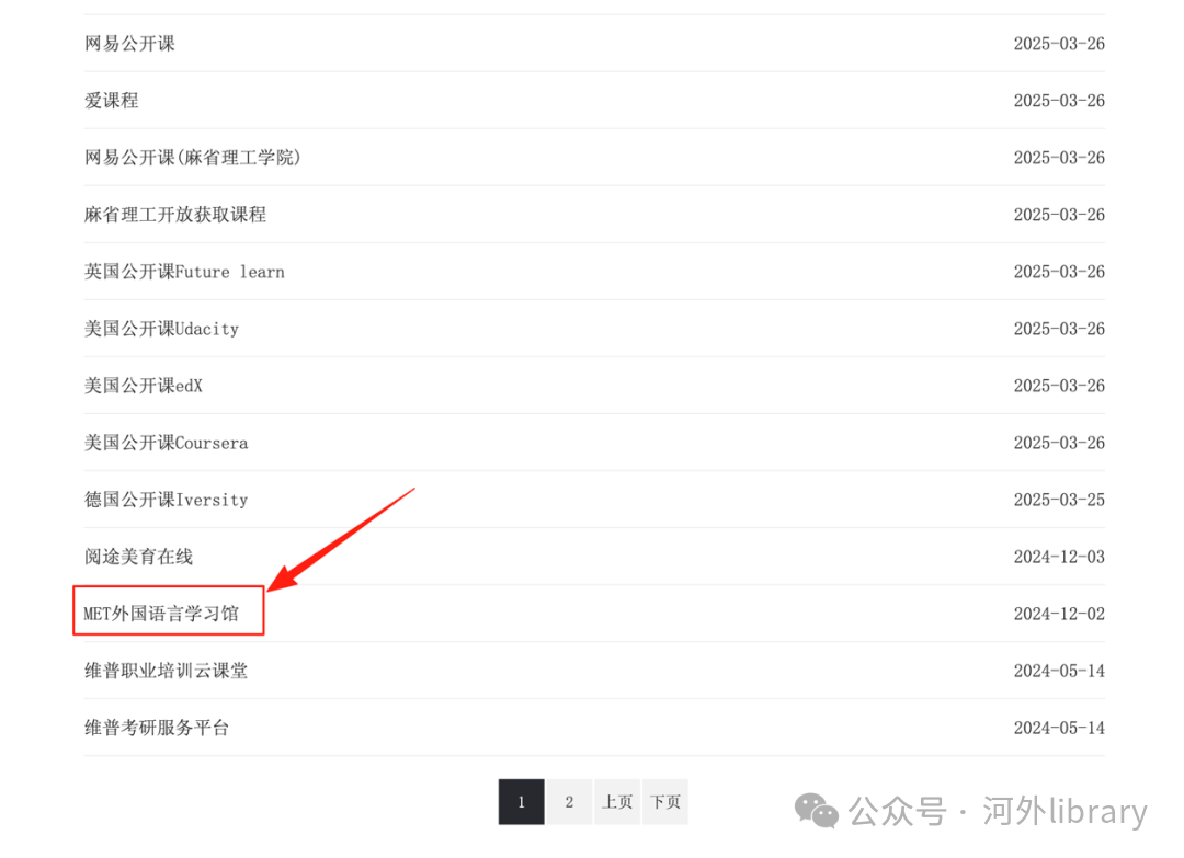 3、点击“MET外国语言学习馆”进入使用界面;