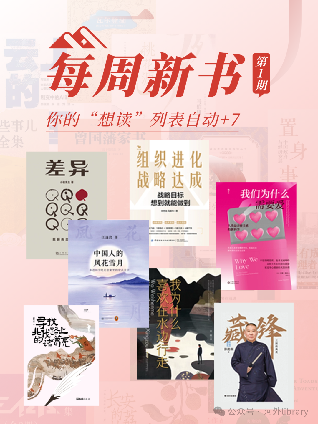 当新书的流动从“月”缩短至“周”,阅读的节奏便与你真实的生活同频共振。从此,每周都有了更清晰的期待:周一,在治愈中启程;周二,在阅读中收获精进;周三,任奇想恣意生长……甄选的七本新书,犹如七个不同的棱镜,每日折射一方知识光谱。