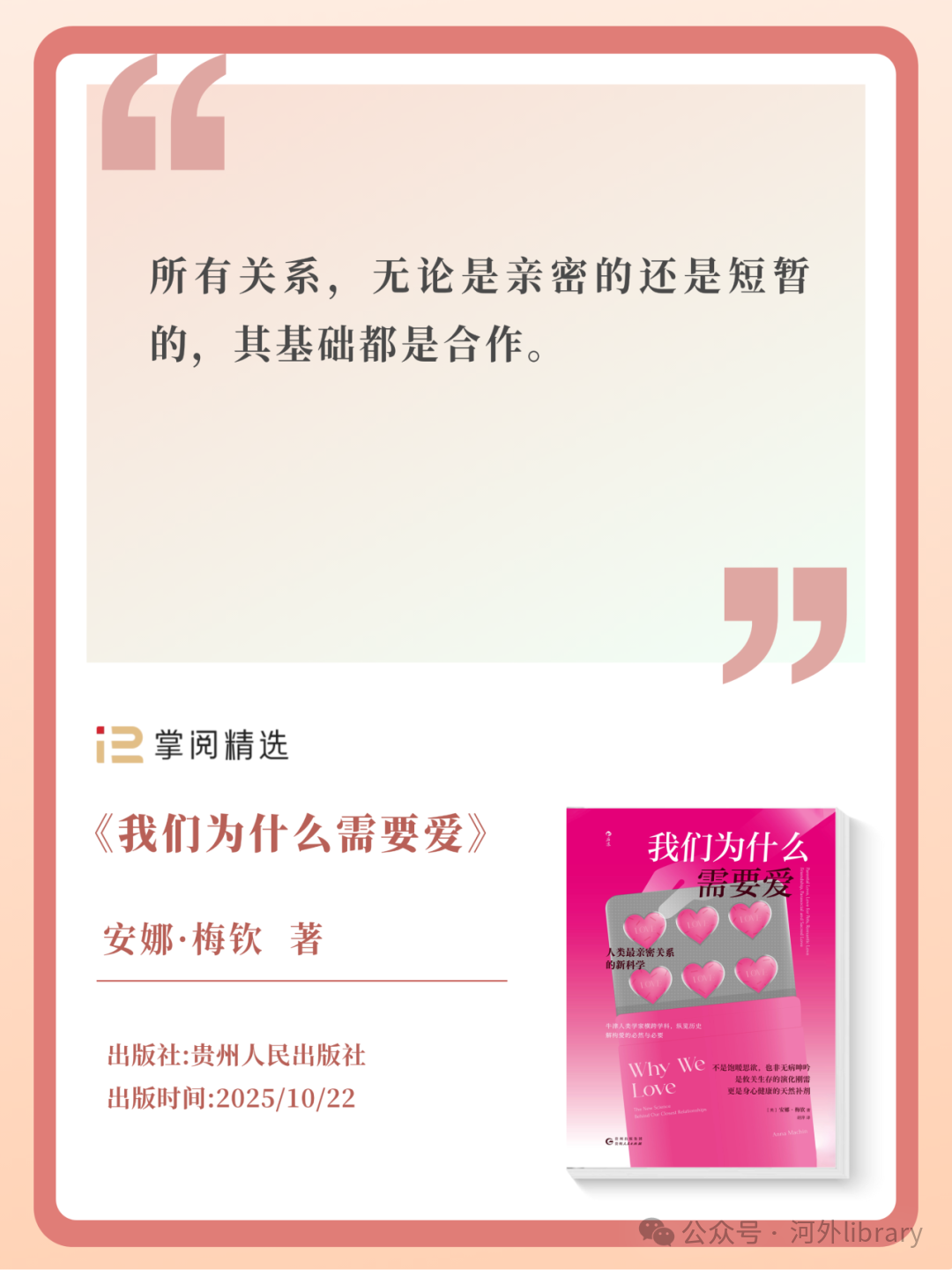 一本关于“爱”的百科全书。我们为什么产生爱、需要爱?在这里有许多从实验室精准验证出的答案。